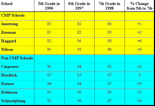 Of the four schools participating in the pilot program, two made significant improvements. The non CMP schools are already up in the 90s, what more of an improvement can be gain?