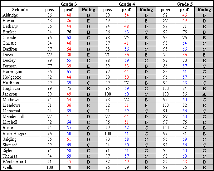 Results from the following schools are not available: Barksdale, Beverly, Gulledge, Haun, Hightower, Miller and Skaggs.